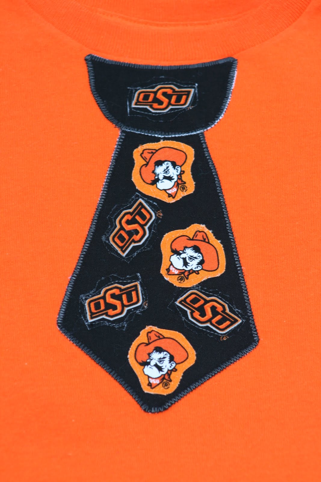 This tie applique can be done on infant, toddler, and youth short and long sleeve t-shirts, as well as short and long sleeve onesies. All available in a variety of colors and patterns. To show team spirit, I like to use embroidered patches or sew appliqued emblems of your favorite team on the tie. Please feel free to share your ideas and I can make them a reality!
