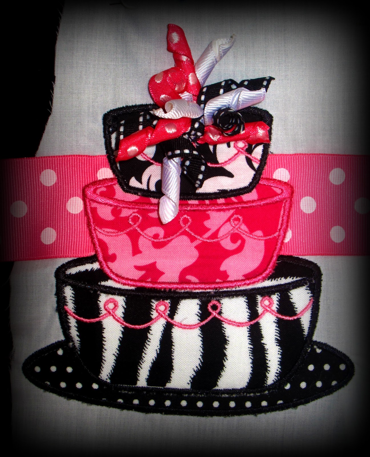 This tiered cake can be made with any colored fabrics you choose. A beautiful ribbon will embellish the shirt behind the cake. A korker ribbon will top your beautiful cake.